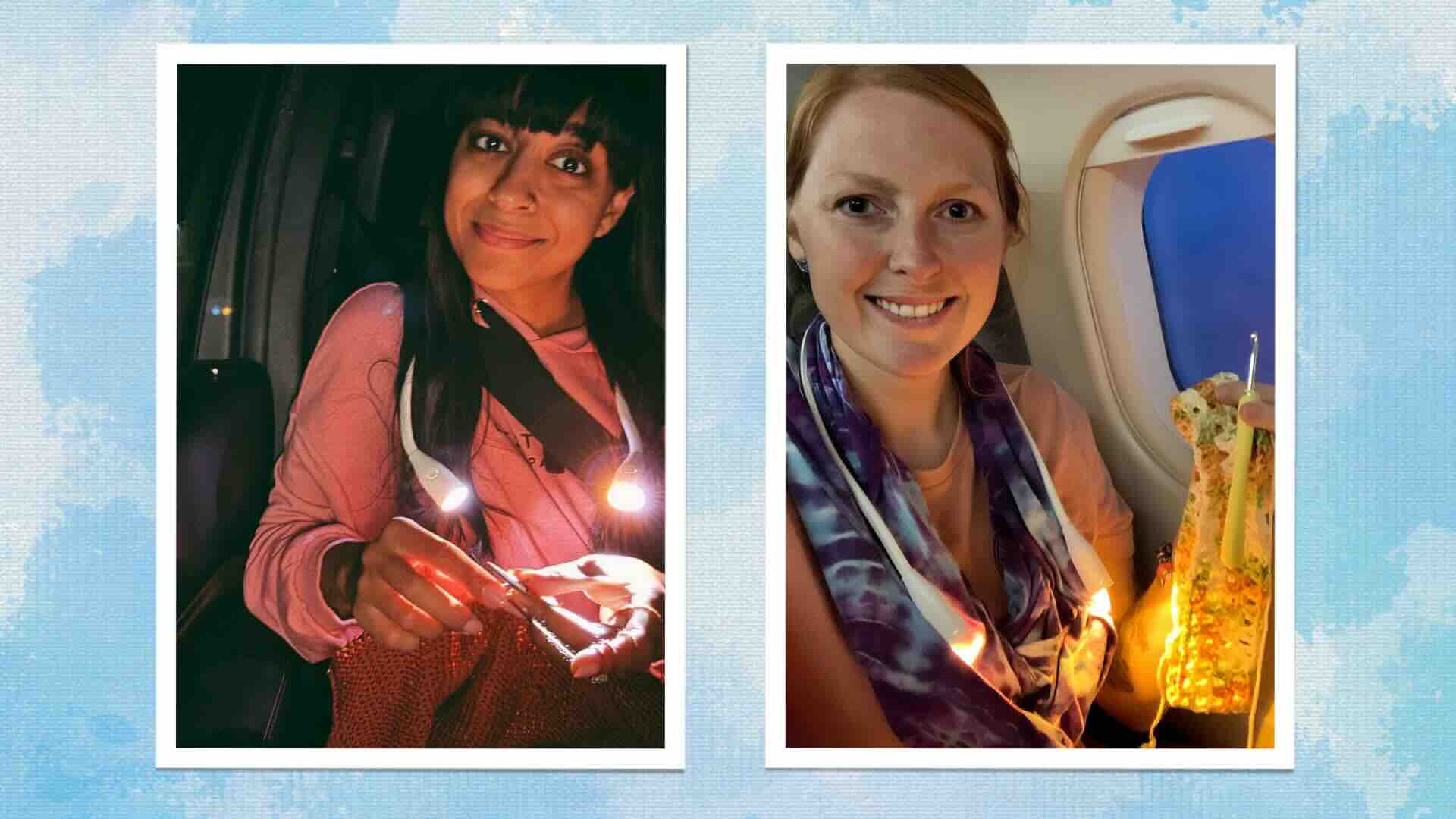 Whether you're on a plane or in the car, you can knit without trouble!